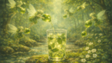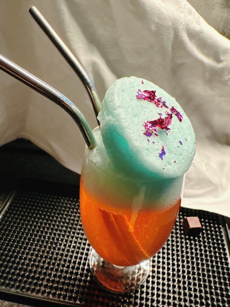 炭酸がミントの泡を押し上げたので、空気穴(ストロー)を添えて。